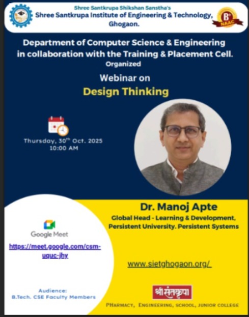 Webinar on "Design Thinking" by Dr.Manoj Apte (Global Head,Learning & Development) Persistence Systems