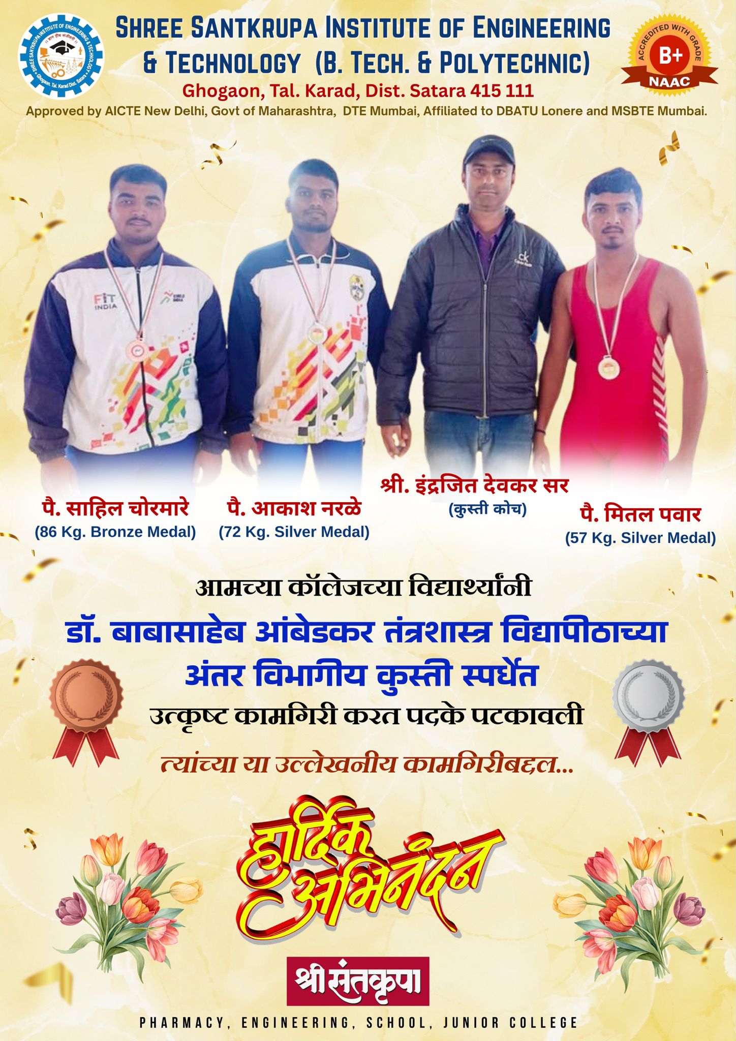 | 15.Our college student Wrestler Mr.Akash Narale got First Prize in Zonal Wrestling Championship under DBATU,which were held at Dhule in Nov.2024. |