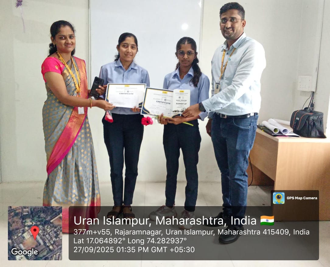 Second Year students Ms.Aditi Khatke and Ms.Sakshi Shewale got first prize in State Level Poster Presentation Competition held at PCPK Karad.