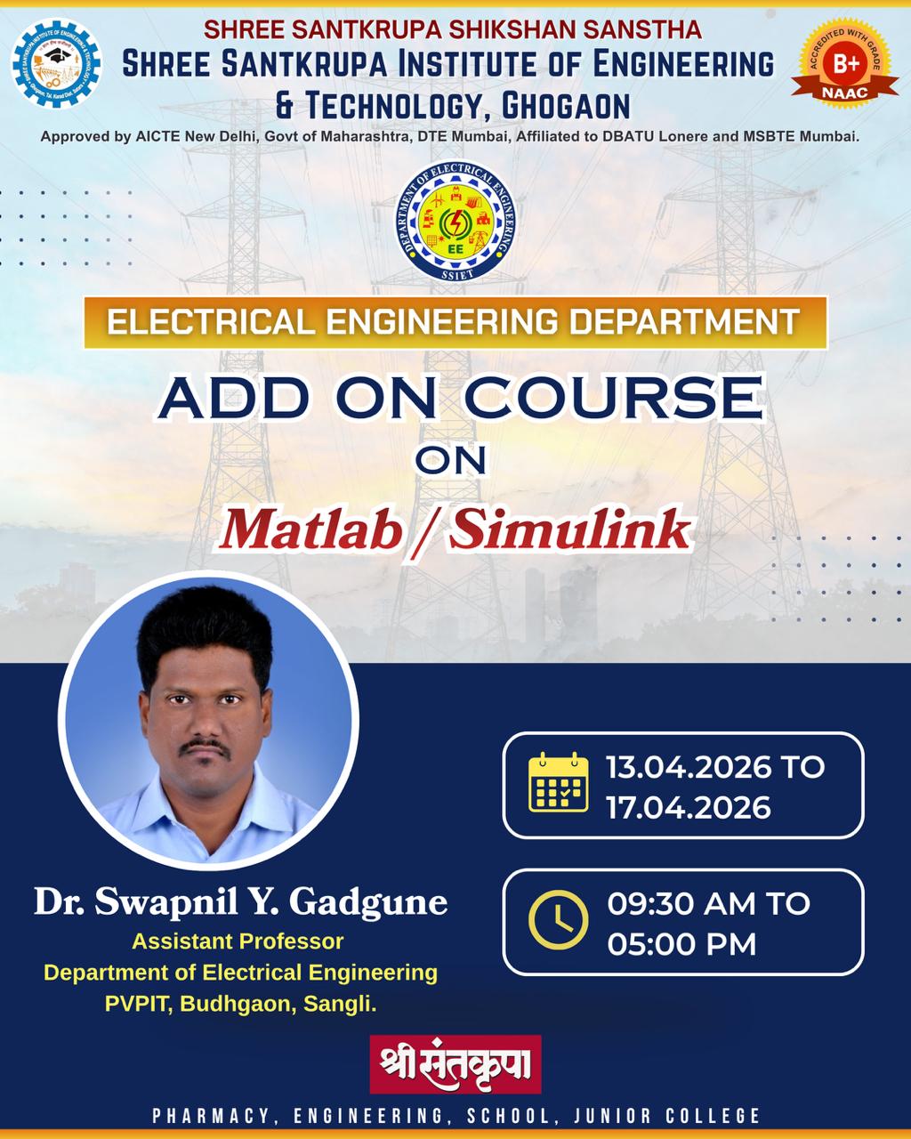 Add On Course on Matlab / Simulink for Electrical Engineering Students
